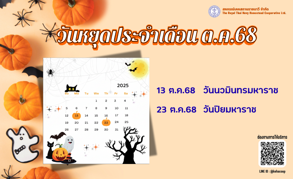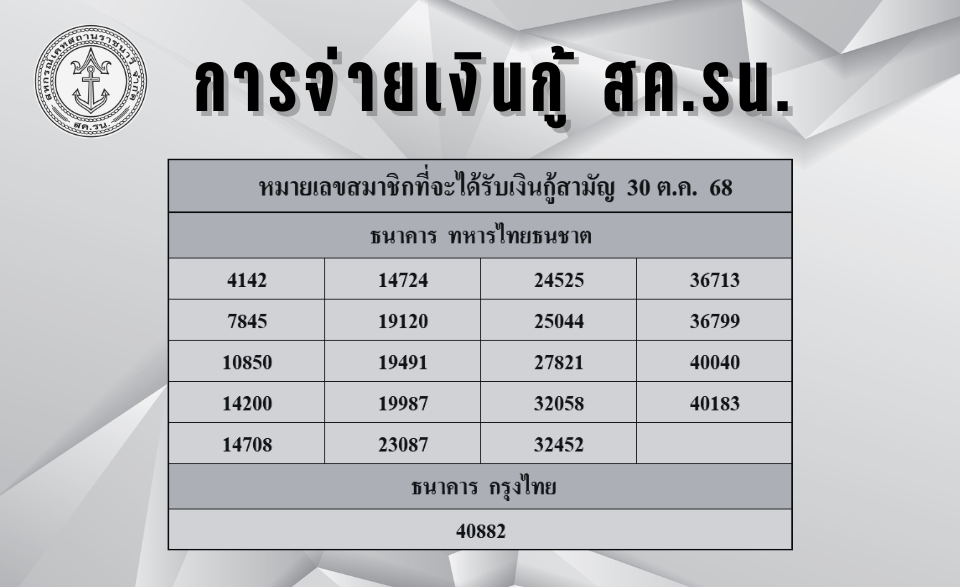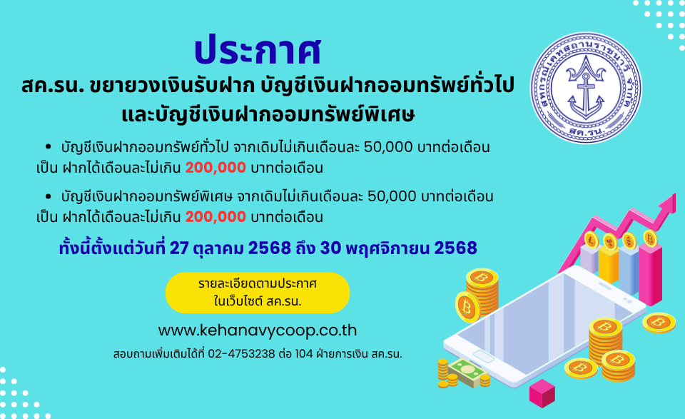 กำหนดการเดินทางไปบริการสมาชิกพื้นที่สัตหีบ วันที่ 28 - 31 ต.ค.68 ณ ห้องจักรนาวา สโมสรสัญญาบัตร กร.
