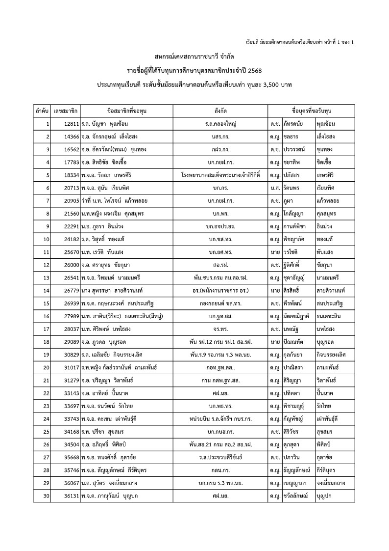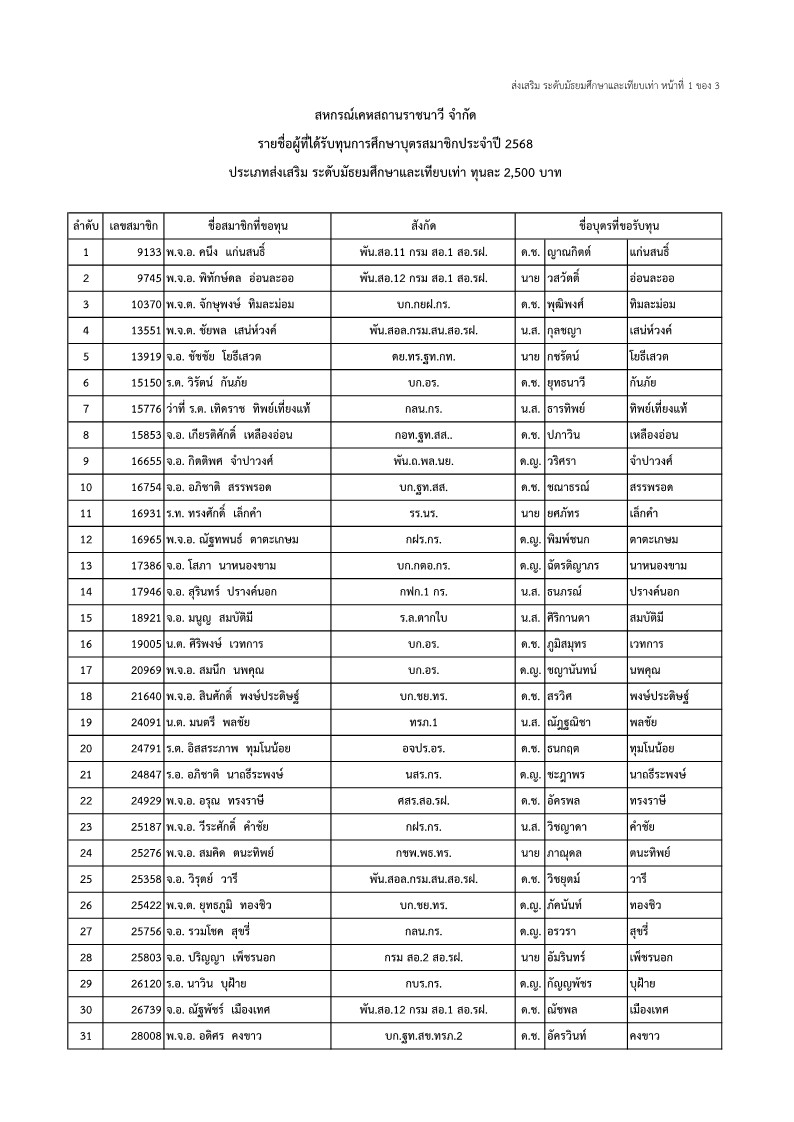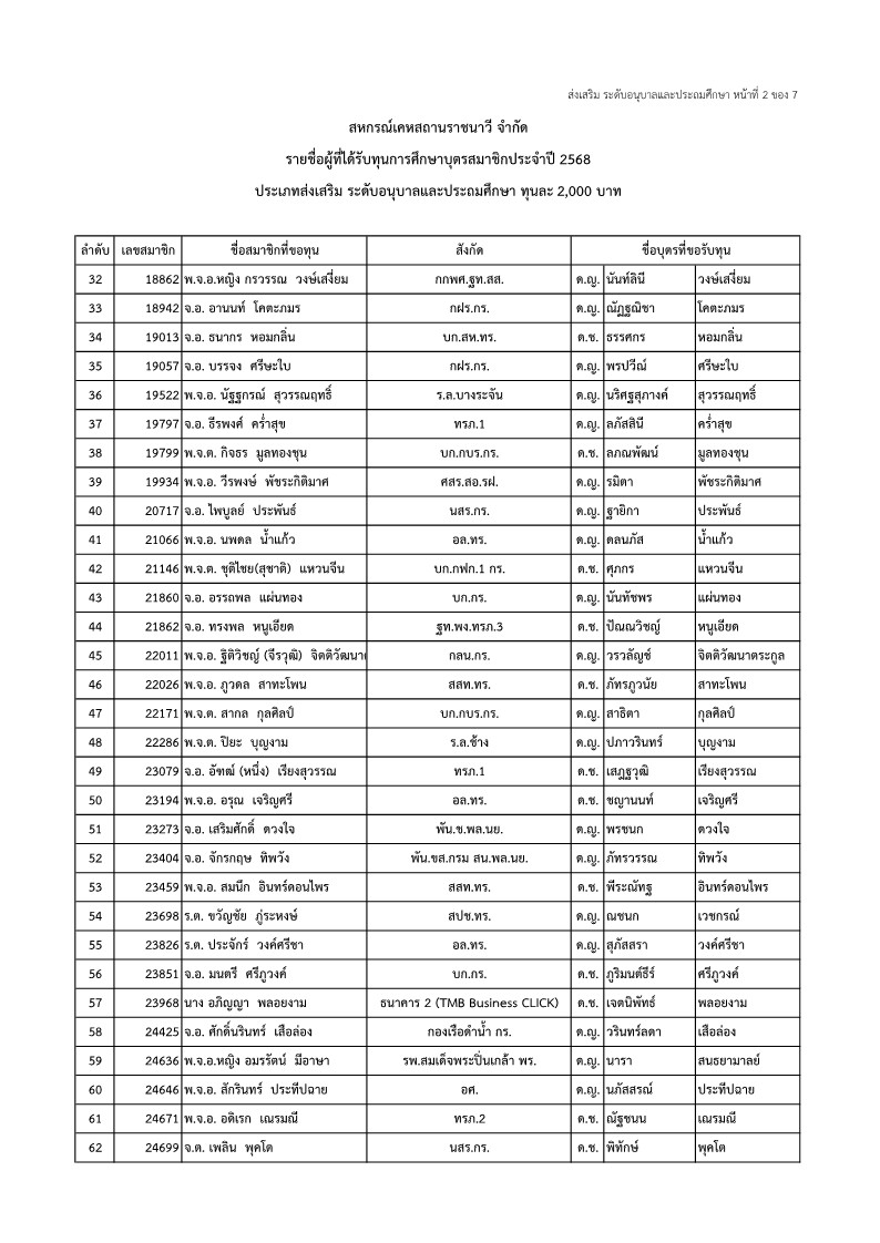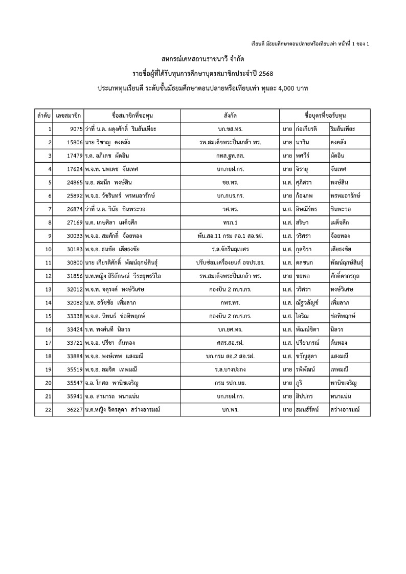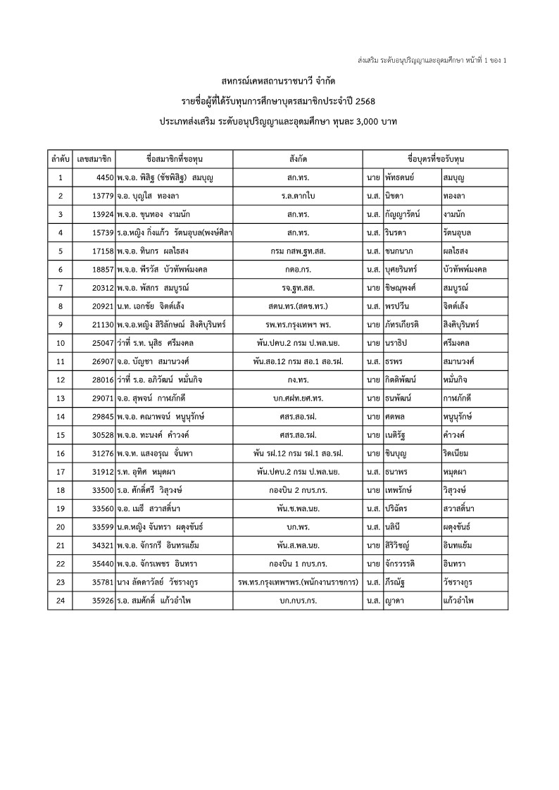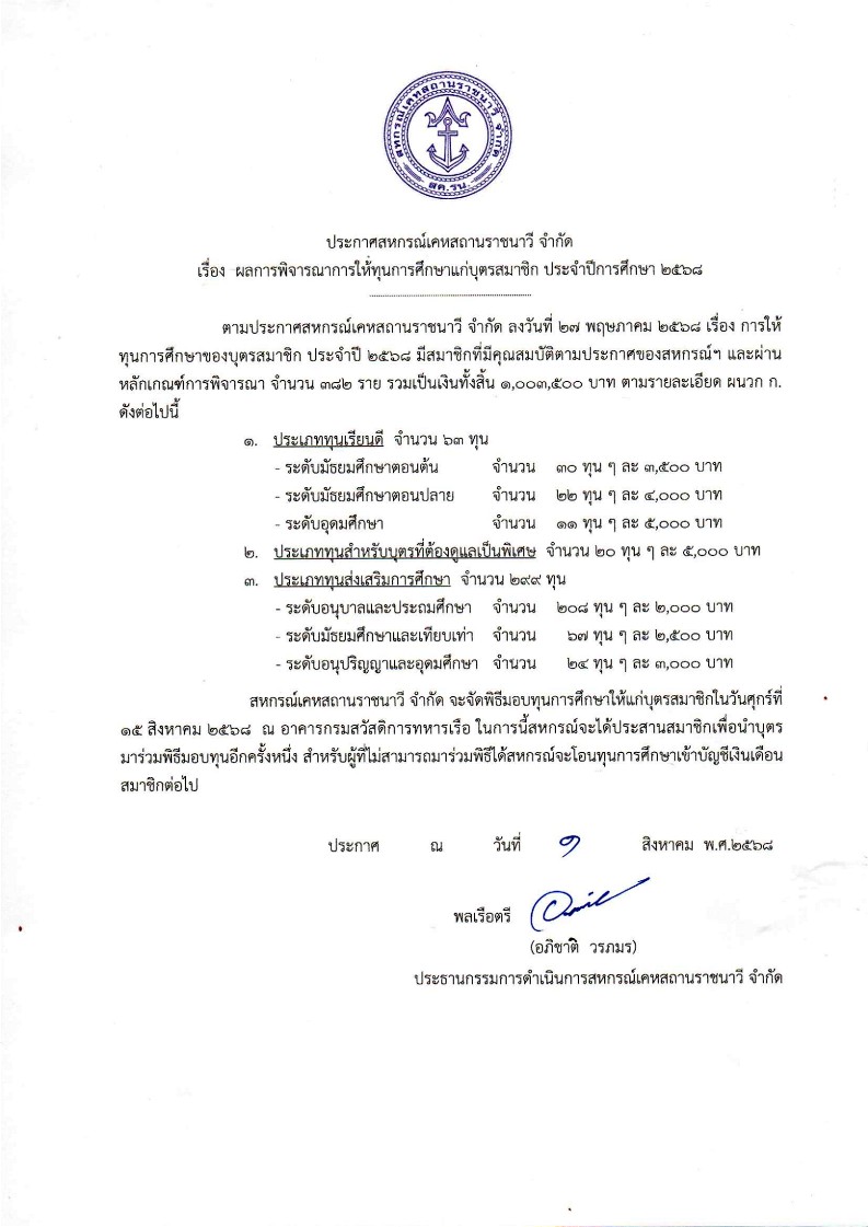 ประกาศผลการพิจารณาการให้ทุนการศึกษาแก่บุตรสมาชิก ประจำปี 2568