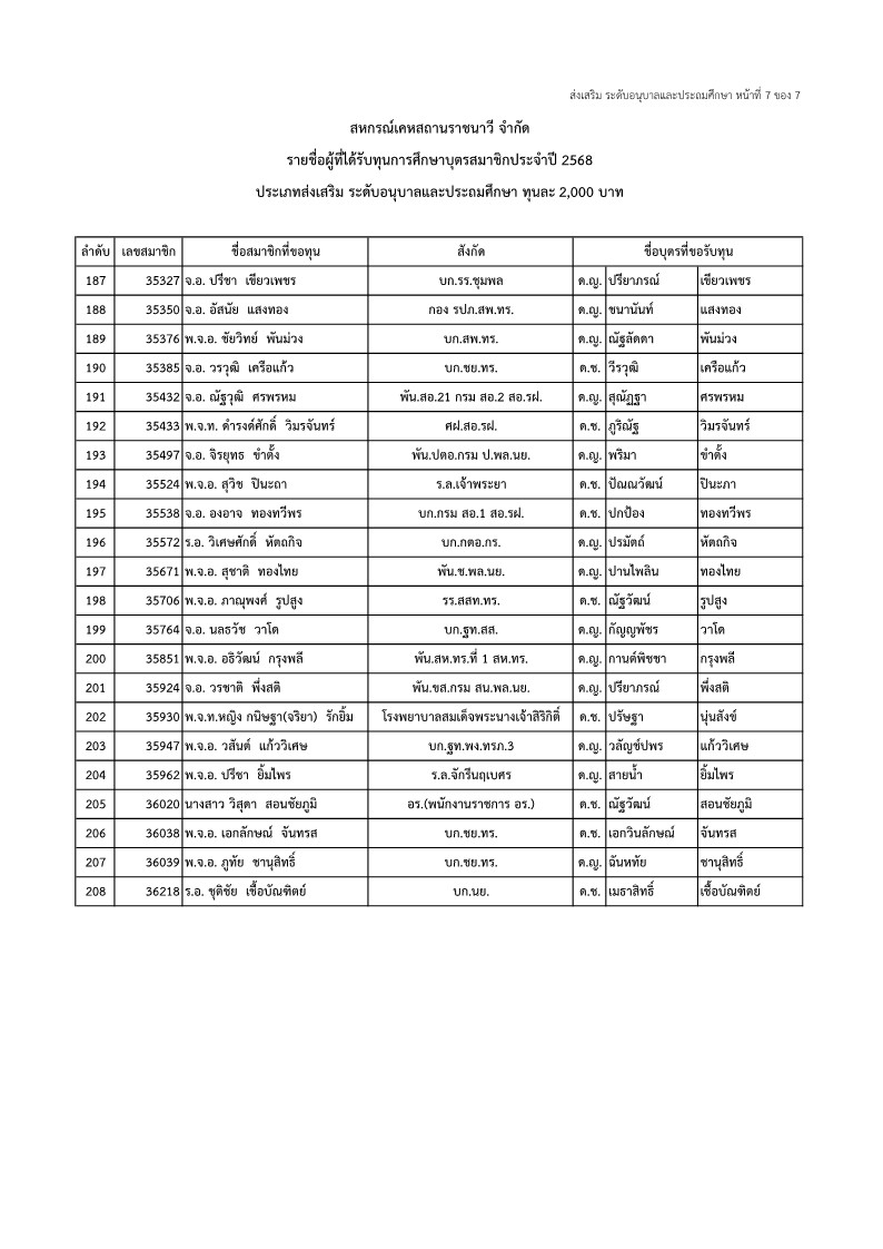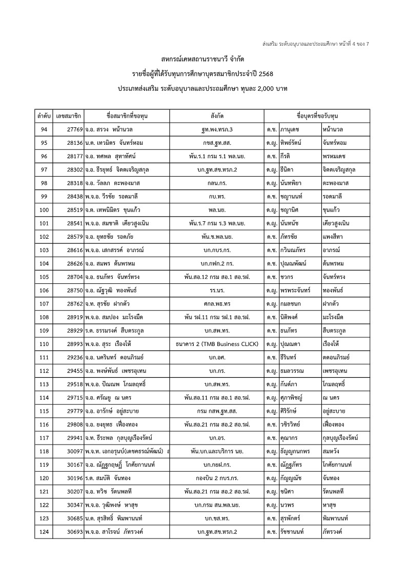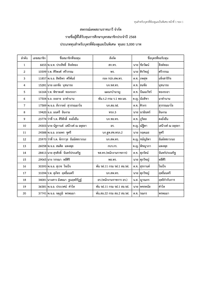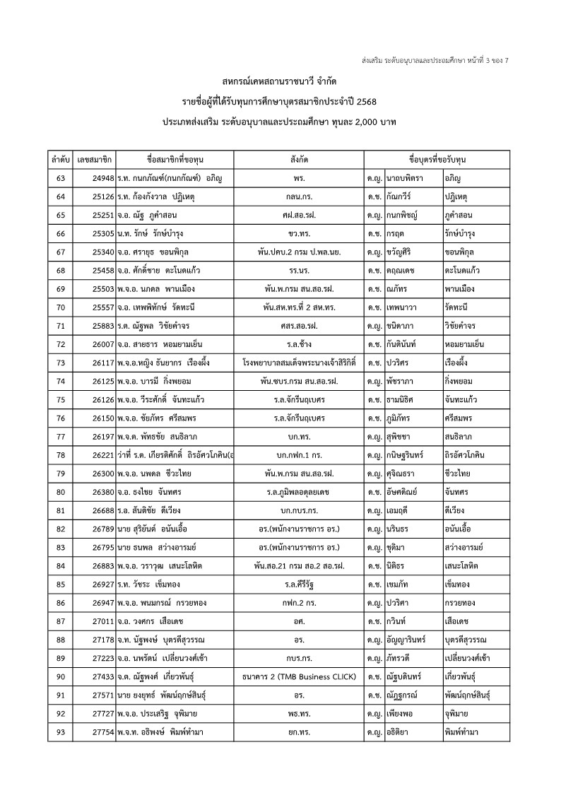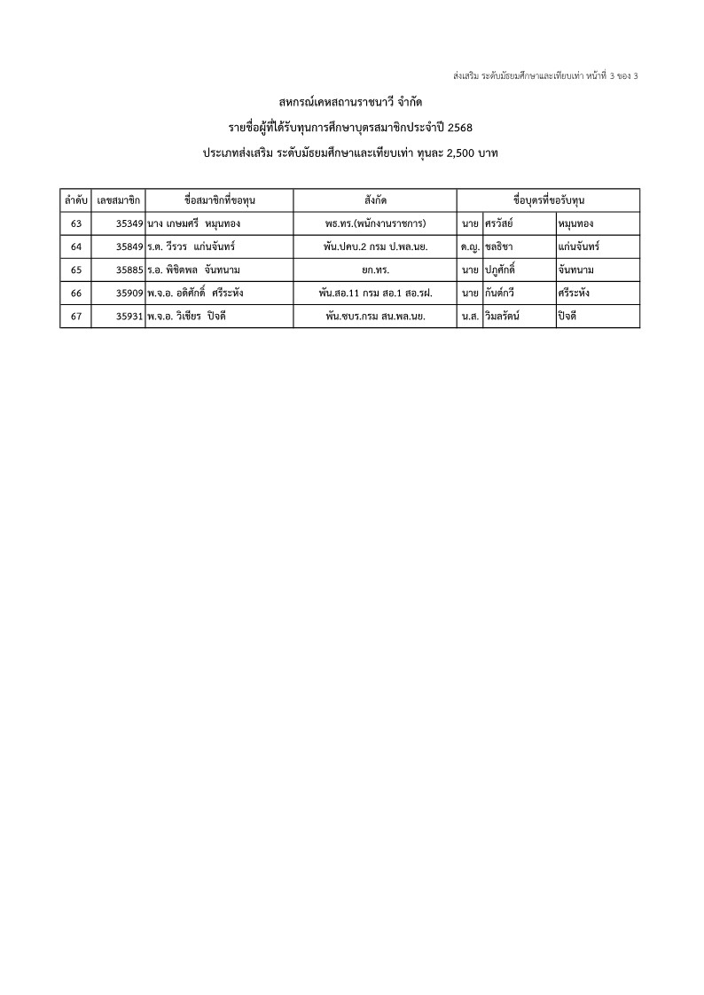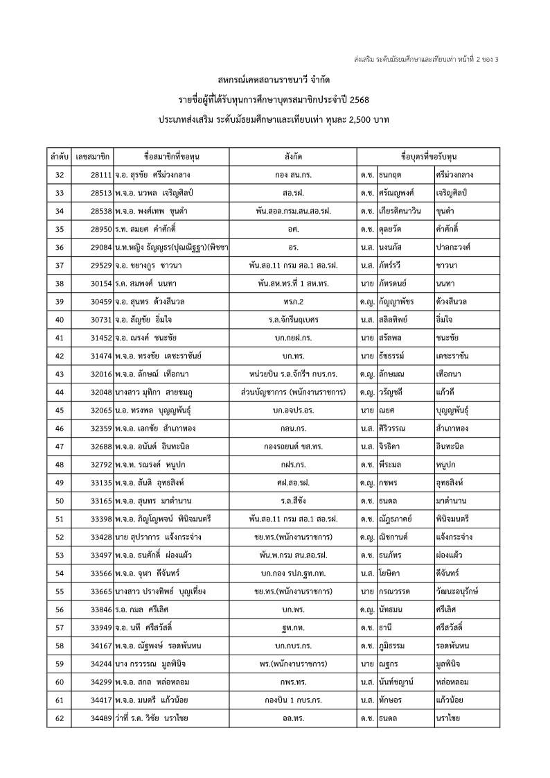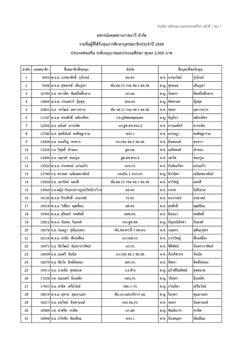ประกาศผลการพิจารณาการให้ทุนการศึกษาแก่บุตรสมาชิก ประจำปี 2568