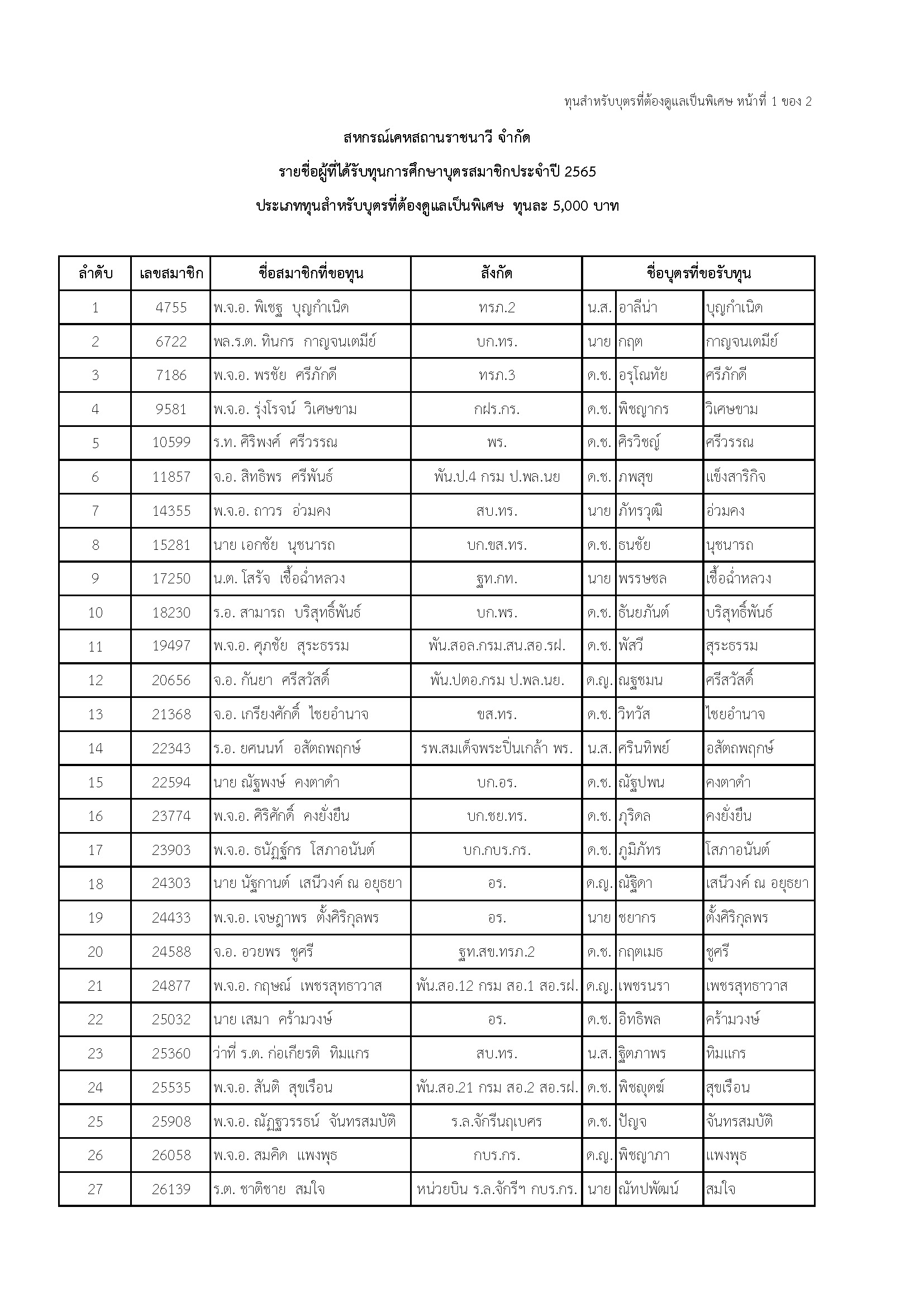 บุตรสมาชิกที่ได้รับทุนการศึกษา ประจำปี 2565 สค.รน. จะโอนเข้าบัญชีเงินเดือนของสมาชิก ใน วันพุธที่ 31 ส.ค.65 เวลา 1600 เป็นต้นไป ขอบคุณครับ