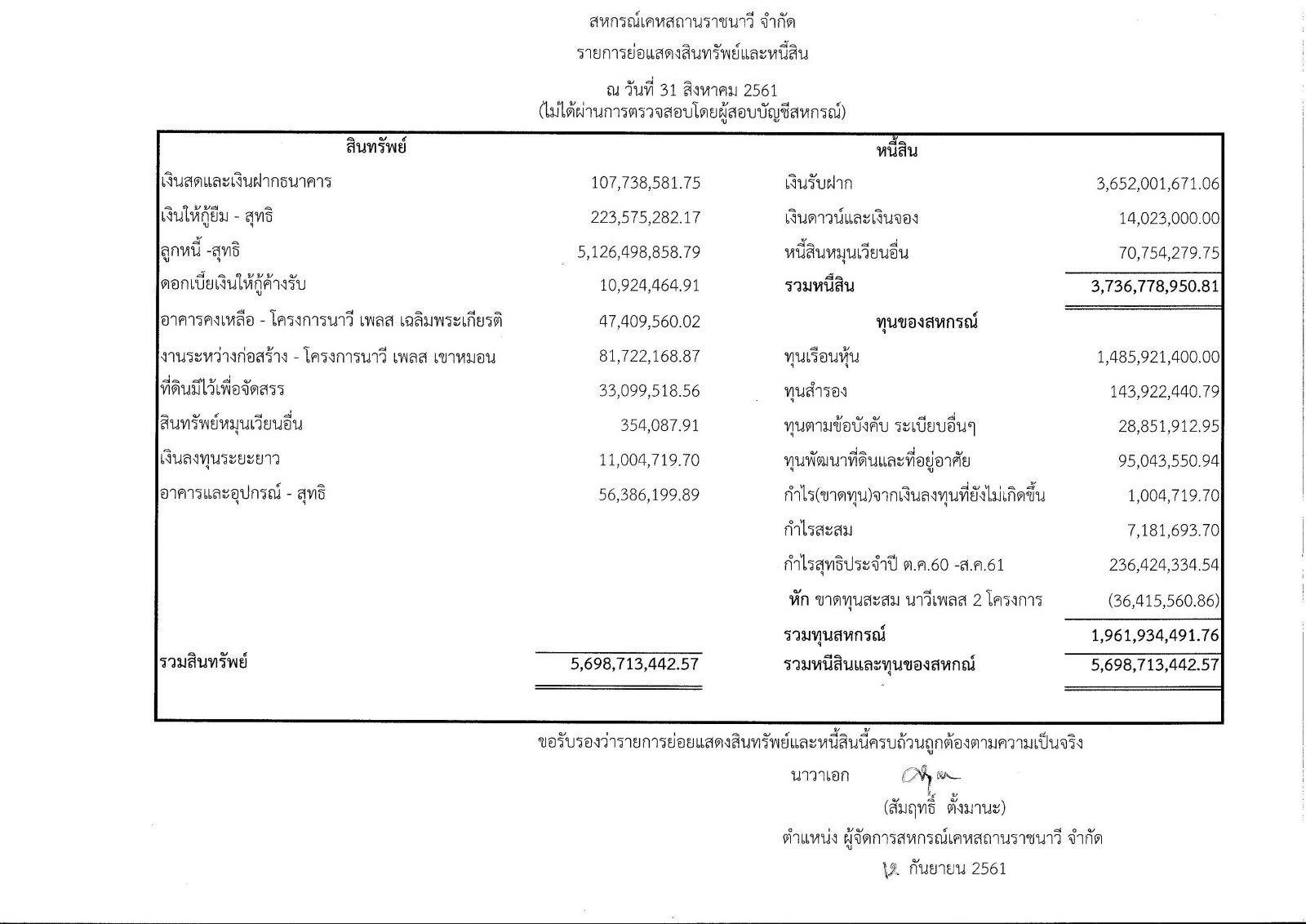 รายการย่อแสดงสินทรัพย์และหนี้สิน ณ 31ส.ค.61